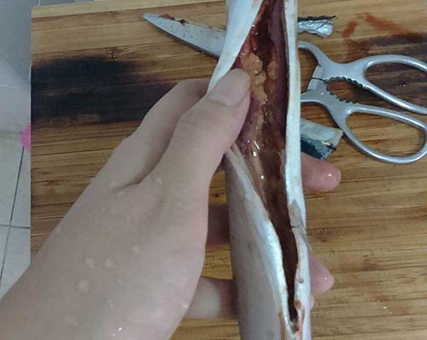 3.把內臟取出,用清水沖乾淨即可。